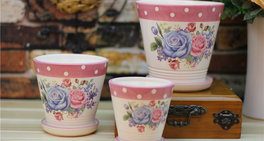 Product Name:Ceramic Flower Pots Description: Ceramic Flower Pots with The Sunflower design Key Features: Item No:HC003ABC Planter Type: Pot Usage: Indoor / Outdoor Pot Material:Dolomite Finishing:Glazed Color:As shown in the picture or as per customer’s requirement Shape: As shown in the picture or as per customer’s requirement Certification: CCIB CIQ SGS Sample Time: 10-15 days Product Info: Inner Packing: 1 Set/Inner Box Outer Packing: 12 Sets/Ctn Carton Size: 0.064 CBM
